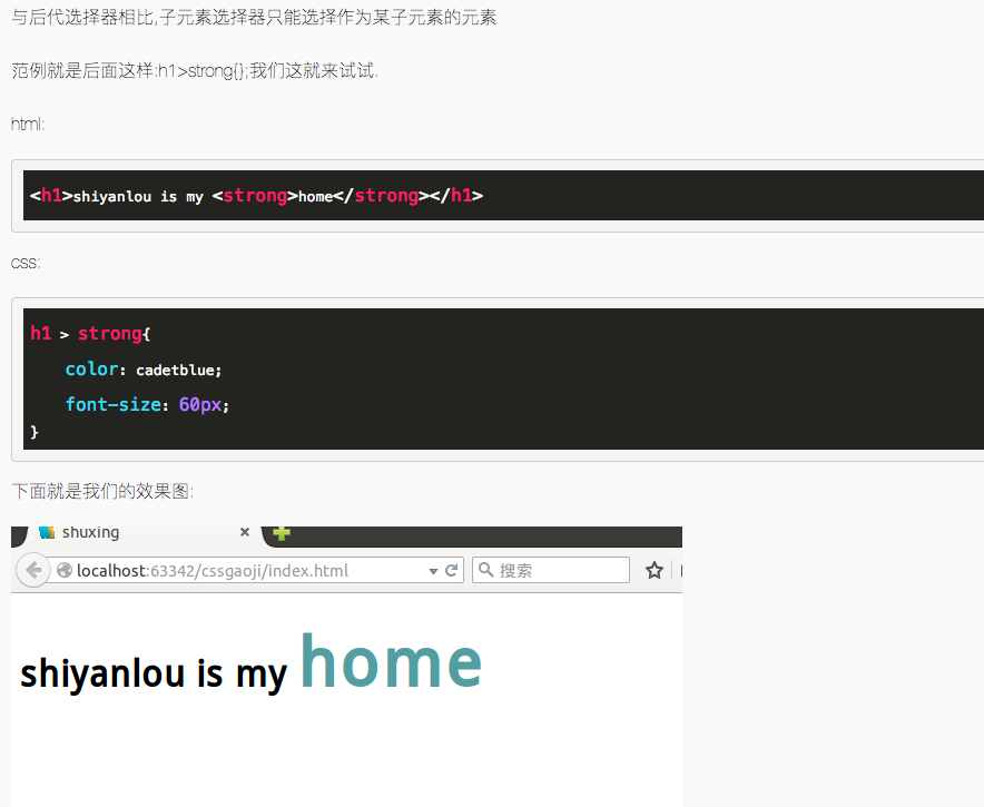 <p class="pclass">这是一个 class 显示效果<a href="http://www.shiyanlou.com">效果</a></p>