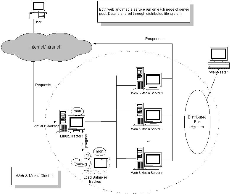 LVS集群的通用结构,讨论了它的设计原则和相应的特点,然后将LVS集群应用于建立可伸缩的Web、Media、Cache和